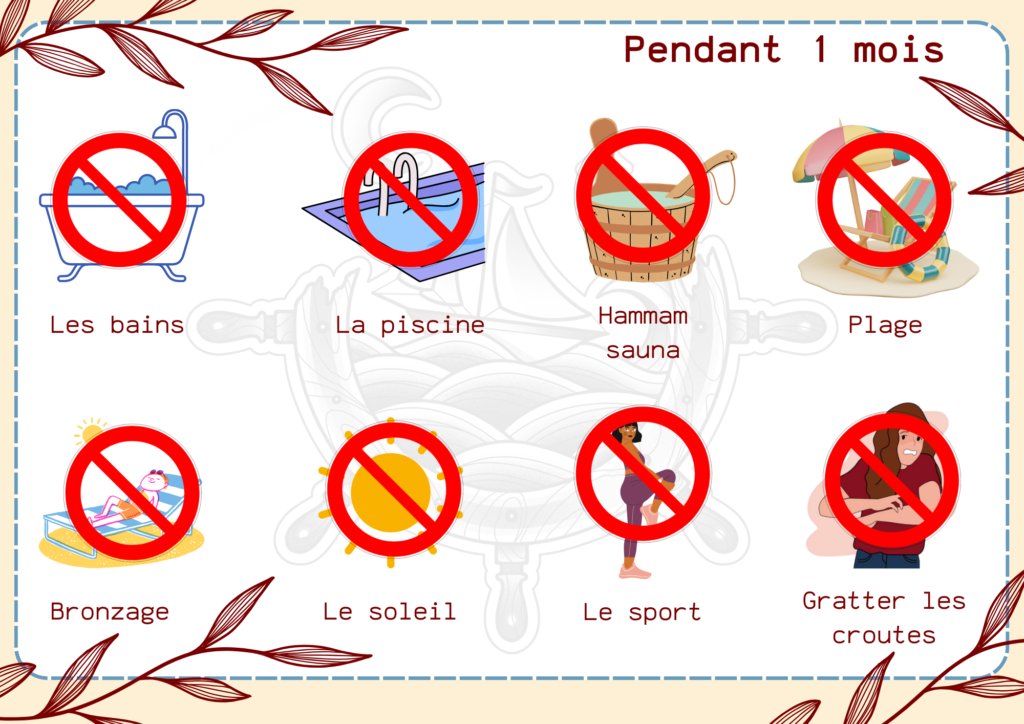 Il est impératif de protéger ton tatouage du soleil et des contacts prolongés avec l’eau (bains, mer, piscine) afin de ne pas altérer sa qualité.